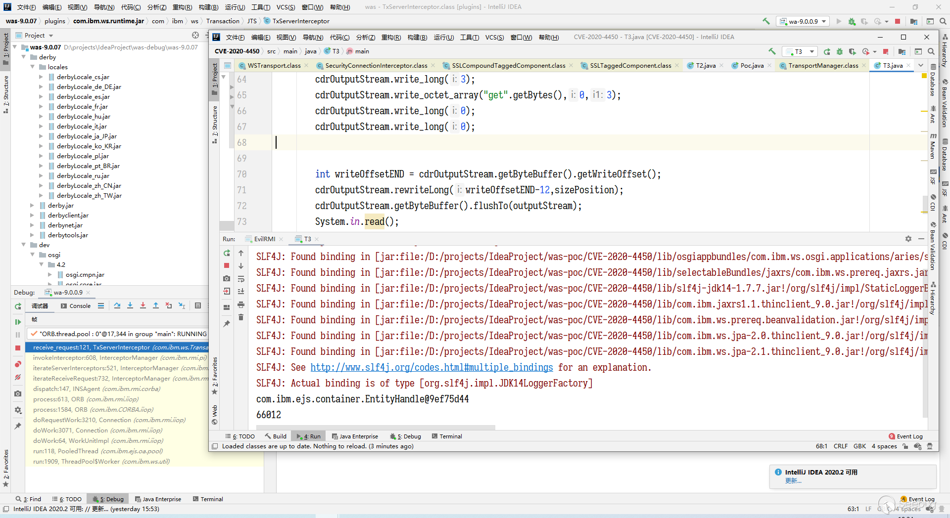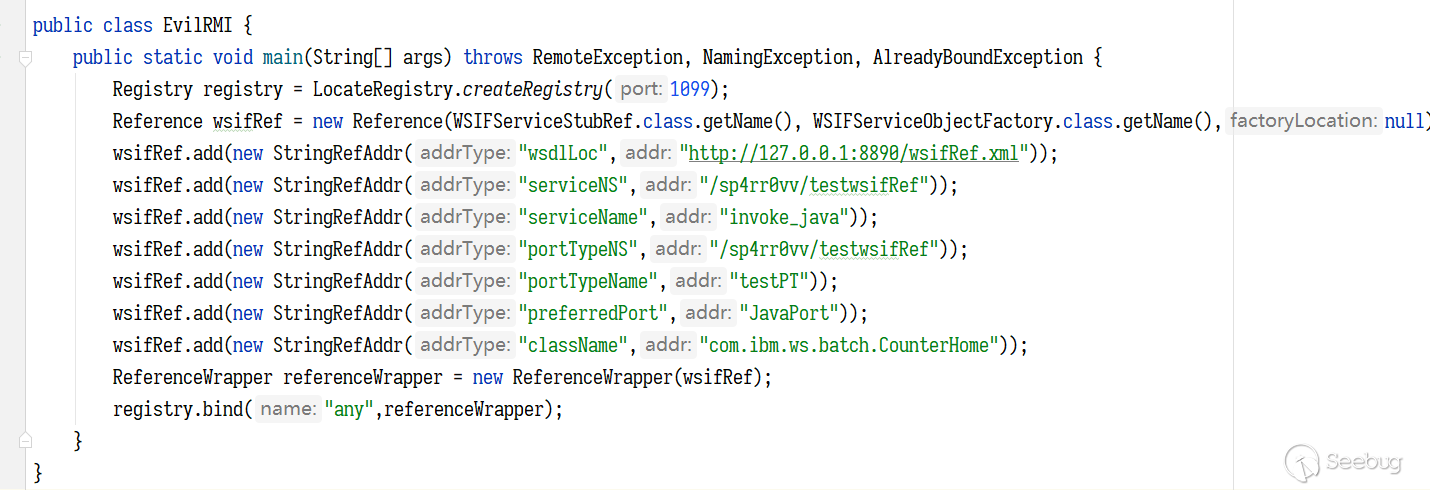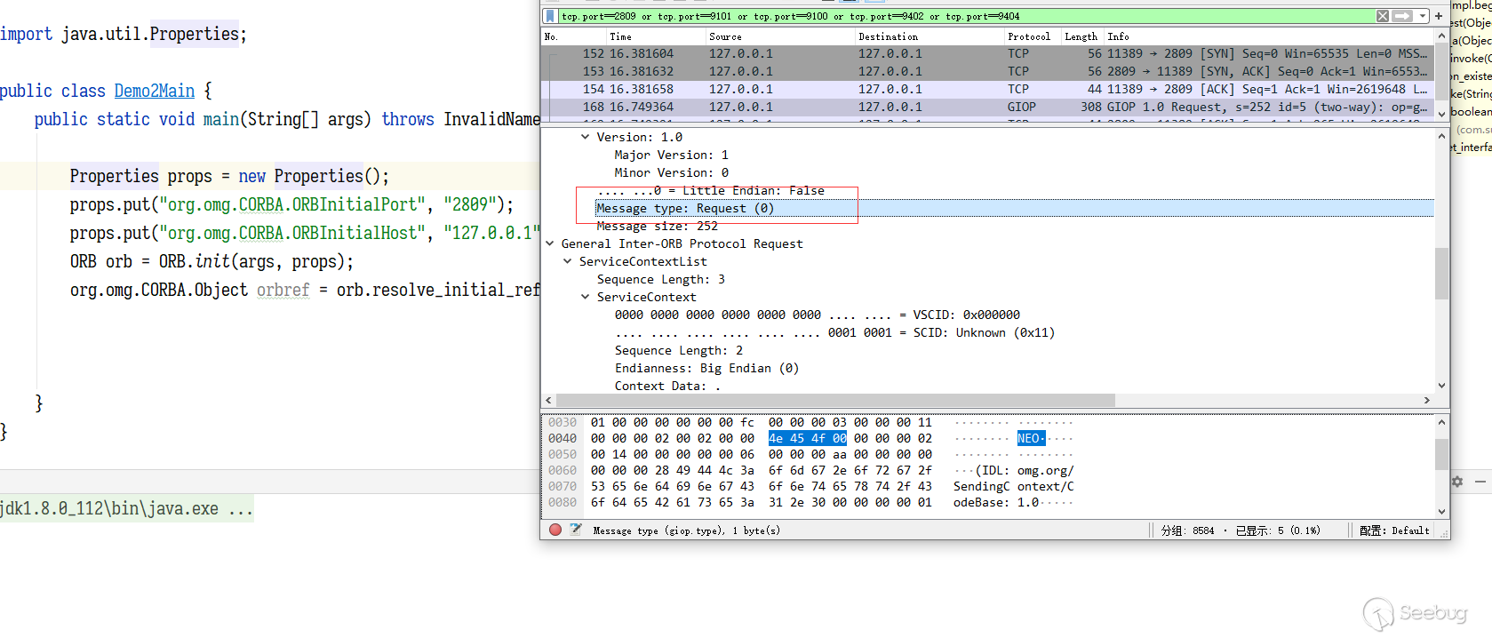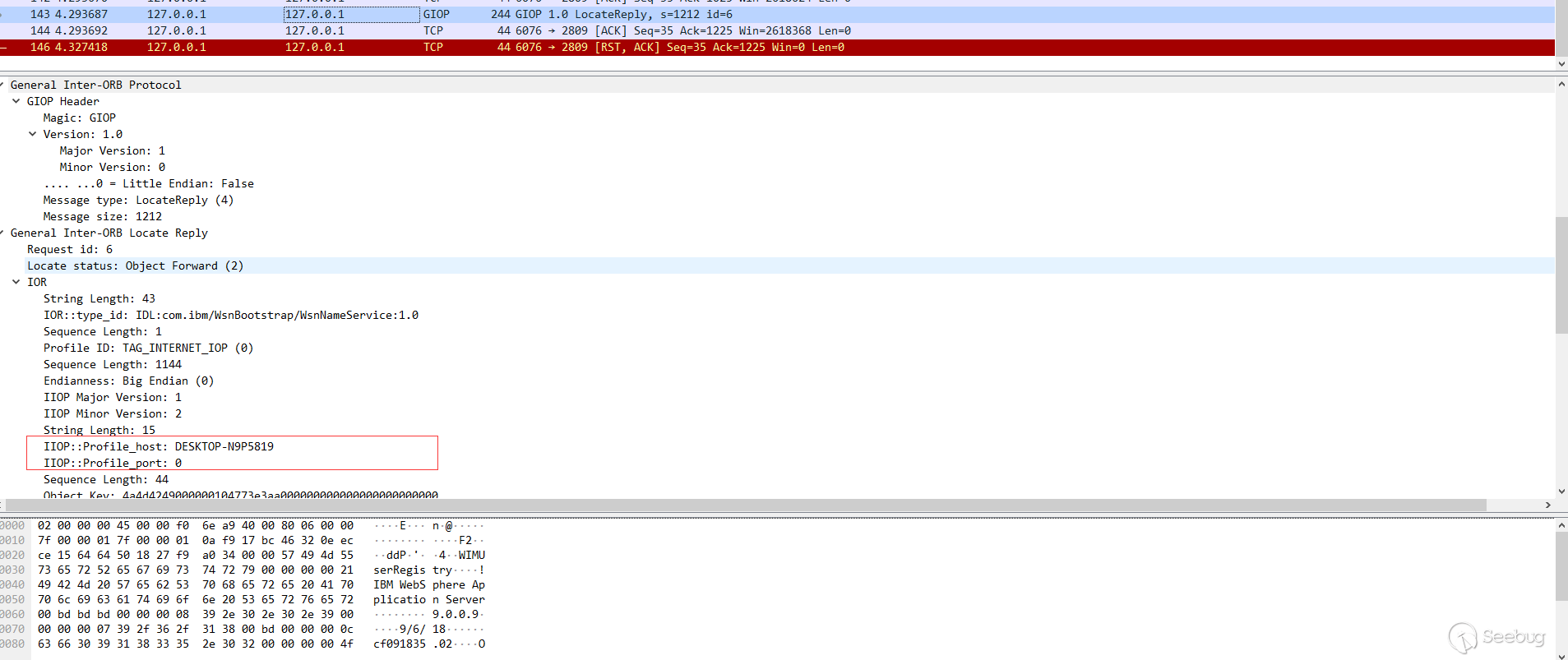 所以想寫個實戰能用的 POC 或者 EXP 的話,直接用 WAS 的 JNDI API 肯定不行的,可以再找一下可以直接發 Request 和設置 ServiceContext 的 API 。或者考慮手動構造一下數據包,默認端口沒改的情況下,直接打2809或者9100,至于怎么構造,可以參考一下 GIOP規范 和 JDK 或者 IBM 的那套 corba api ,下面演示一下大致的構造過程