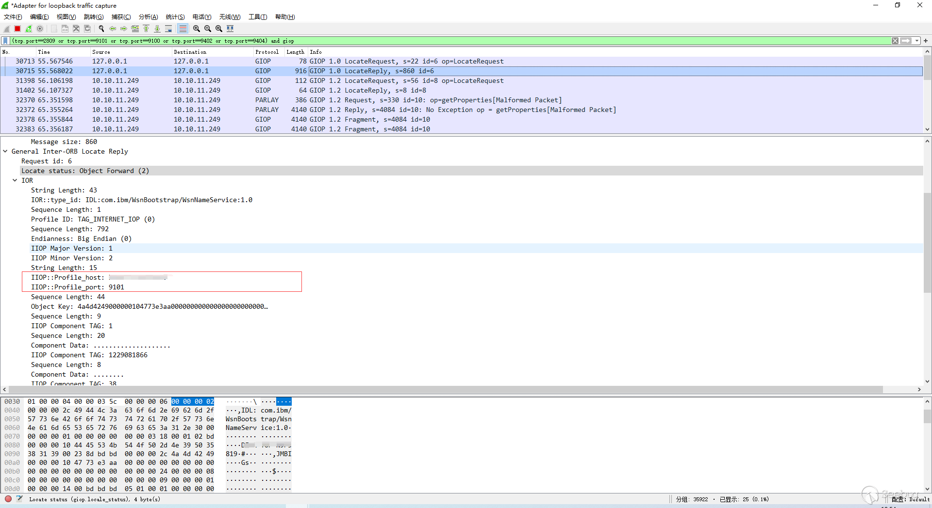 可以抓包和 Debug 一下源碼看一下為什么會這樣,在 WsnInitCtx 上下文中 list 或者 lookup 的實現是,先去發個 locateRequset 去 BooStrap 那獲取 NamingService 的地址,拿到 NamingService 的 IOR 后再發送 Request 請求,如果 WAS 沒啟用 SSL 的話,在服務器返回的 IOR Profile 中是會帶有端口指明 NamingService 的端口。