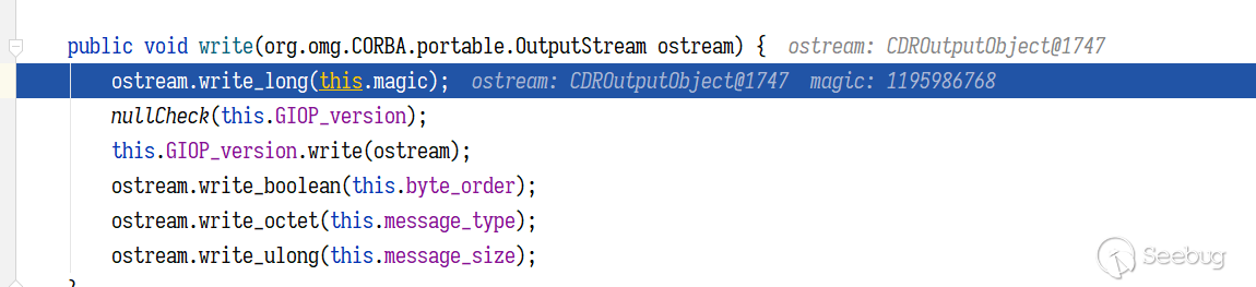 cdrOutputStream.write_octet((byte)1);//GIOPMajor