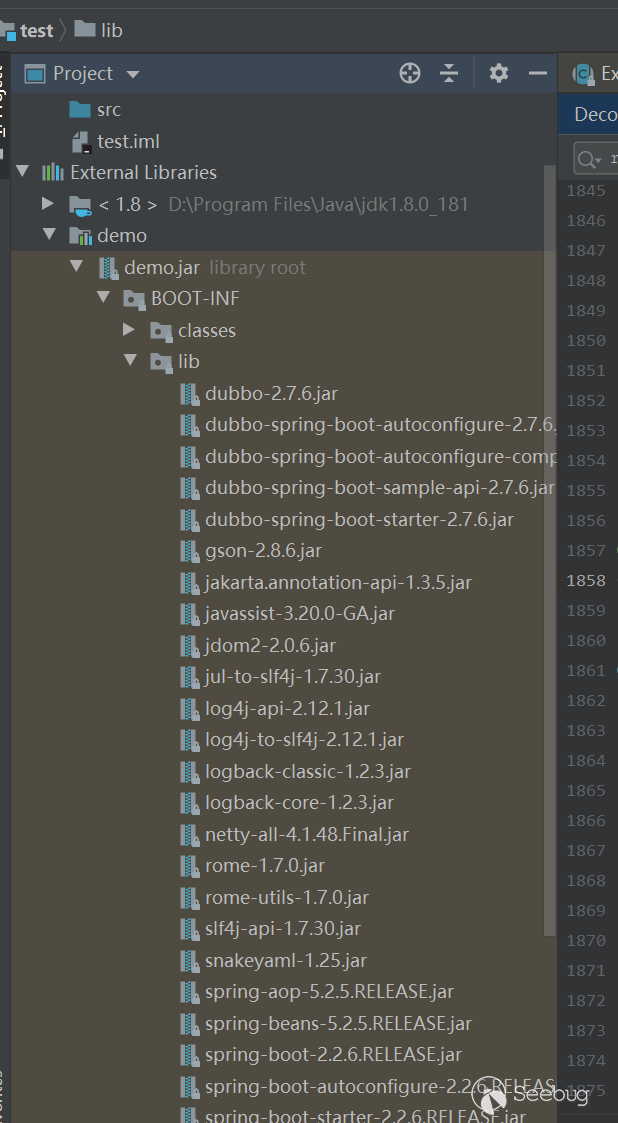 在項目下創建一個lib目錄,然后打開demo.jar里面的lib下的所有jar拷貝到新建的lib下,并將新建的lib添加到libraries。