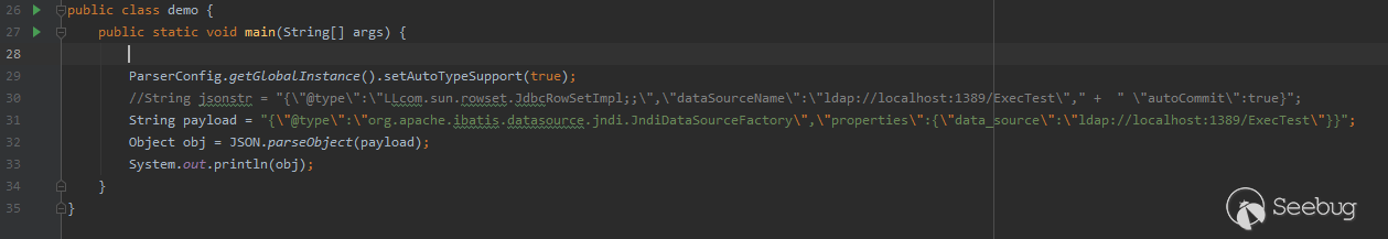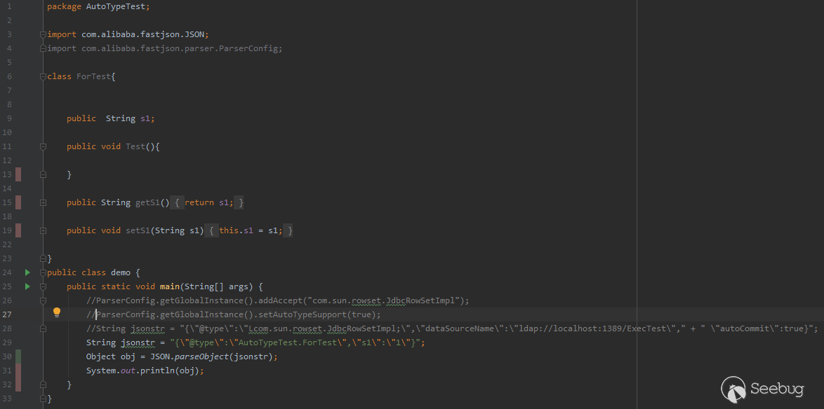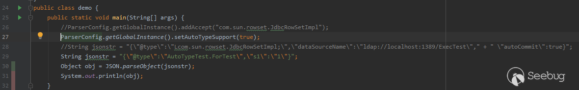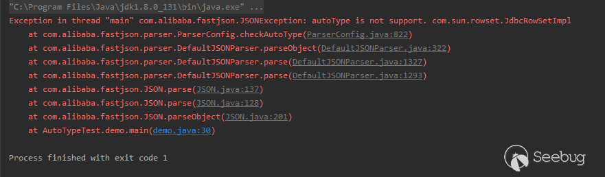 這個測試樣例在1.2.24版本是可以執行成功的,但在1.2.25版本中卻爆出來autoType is not support錯誤。