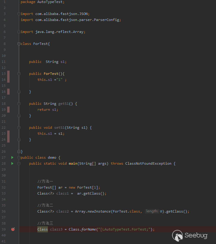 3、AutoTypeTest.ForTest[]對應的類對象名則為"[LAutoTypeTest.ForTest;"