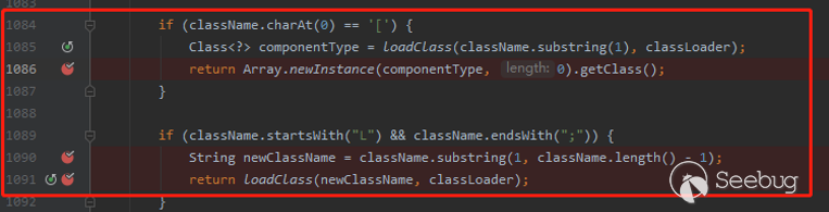 第一個if分支,是用來限制傳入的類名長度的,這里只要我們傳入的poc中類名長度在3與128之間即可。而第二個分支,我們上文已經分析過了,目的是剝去類名中的首尾”L”與”;”