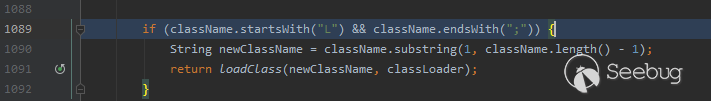 當傳入的類名以”L”開頭,且以”;”結尾時,程序將去除首尾后返回。