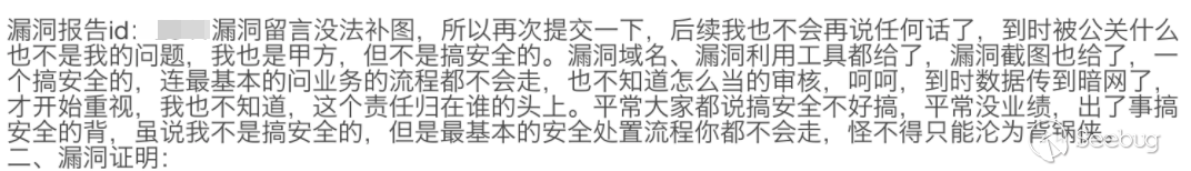 有些同學就會說了,對SRC安全技術人員進行釣魚,這不是?投羅?嗎。當然,釣?安全?員,成功率極低。但是換位思考下,如果你是SRC審核?員,?個?帽?提交了核?應?,且有圖有真相的漏洞復現截圖的時候,這種情況下,明知道可能有惡意??的?險,也不得不去冒險,因為如果這是?個真的大漏洞的話,不及時處理可能會造成極大壞影響。