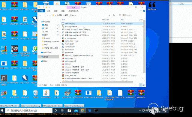 如果我們把?個惡意的?件和?個圖?組合在?起,打包運?后,程序進??解壓,看到的是?張圖?,但是后???程序已經悄悄運?了,這種效果如何?看下?的動圖展示: