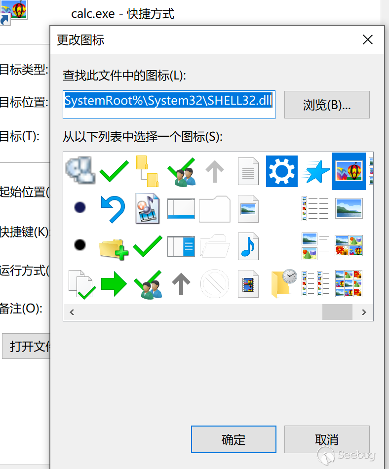 ?在實施釣?過程中,對于我們的calc.exe的快捷?式來說,?個??的計算機ico圖標,顯然看起來不像?個好玩意,因此可以嘗試在“屬性”中去更改該?件的圖標: