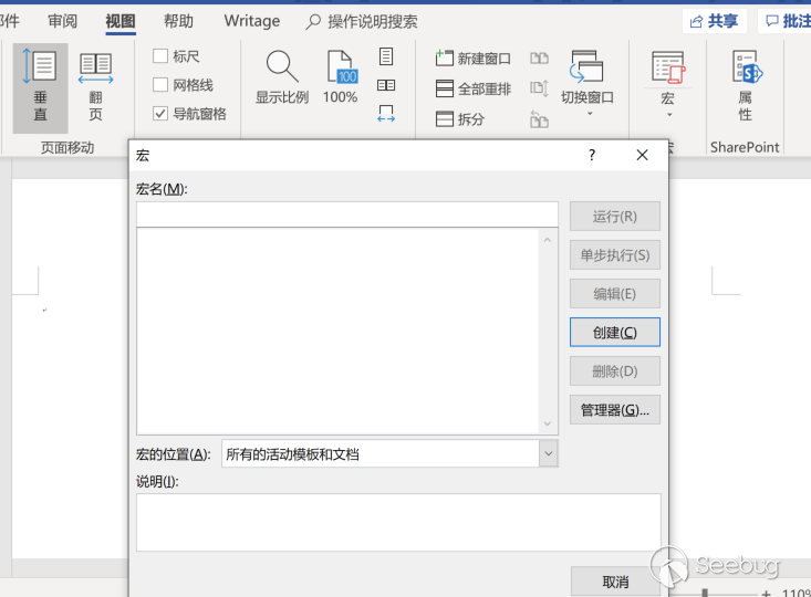 然后在word的視圖功能中植?相關宏: