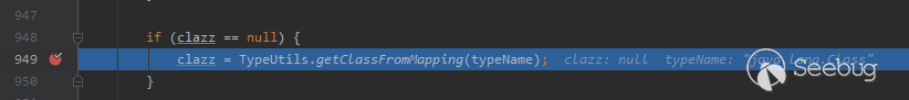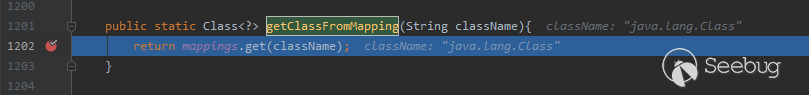 回到調試流程中findClass方法來,我們構造的typeName(@type指定的"java.lang.Class")被findClass方法匹配到了,因此java.lang.Class類對象被返回。