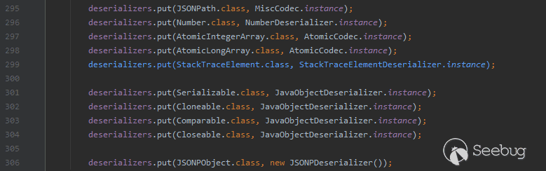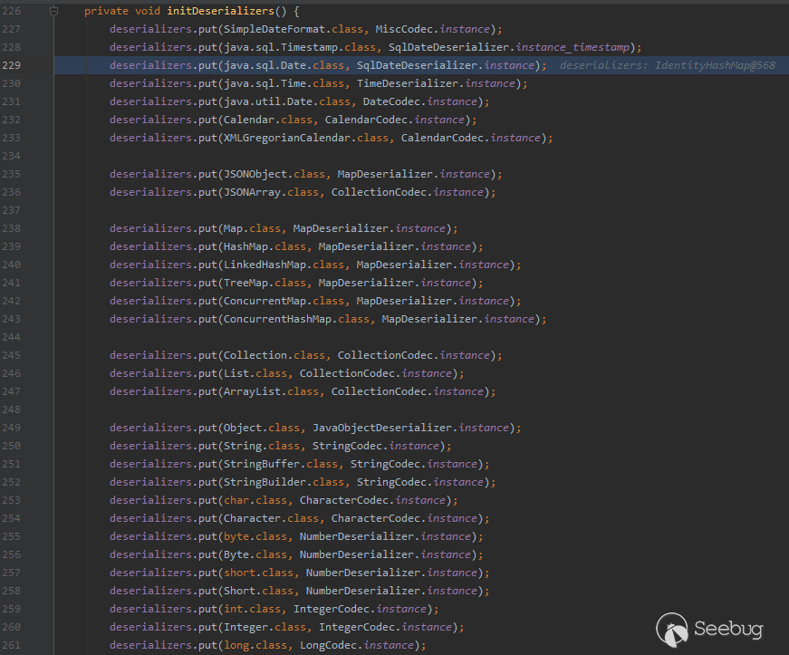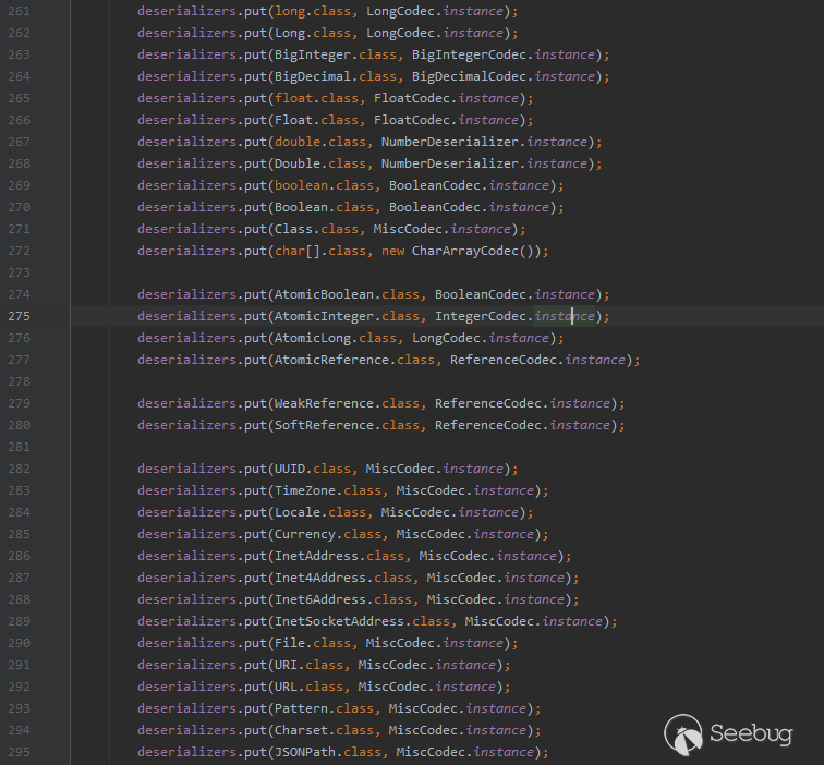 Mapping集合則是用來存儲基礎的Class,如果\@type字段傳入的字符串如果對應了基礎Class,程序則直接找到其類對象并將其類對象返回,從而跳過了checkAutoType后續的部分校驗過程。而buckets集合則是用于并發操作。