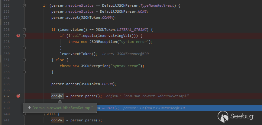 "a":{"\@type":"java.lang.Class","val":"com.sun.rowset.JdbcRowSetImpl"} 解析過程