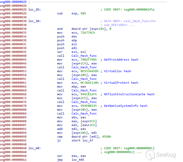 有趣的是,Buer和Ryuk勒索軟件使用相同的shellcode裝載器來執行內存中的惡意軟件代碼: