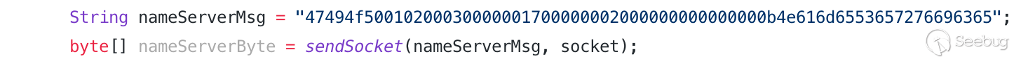 而在 Wireshark 中可以看到,與第一次獲取NameService中的內網 IP、端口進行了 Socket 通信。