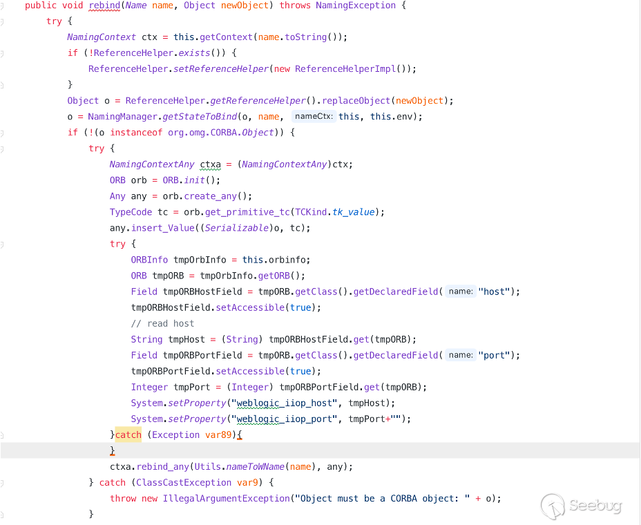 a. 修改 weblogic.corba.j2ee.naming.ContextImpl 類中的 rebind 方法