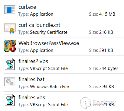 curl.exe,Curl-ca-bundle.crt,WebBrowserPassView.exe,tokenstealer.vbs,Tokenstealer2.vbs,Tokenstealer.bat和sendhookfile.exe的功能如下: