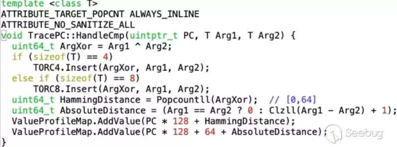 雖然libFuzzer已經在反饋中添加了對條件判斷語句的反饋,但只使用漢明距離和絕對值距離計算條件語句中左值和右值的距離。這兩種算法的逼近作用是有限的,很多條件是逼近不了的。