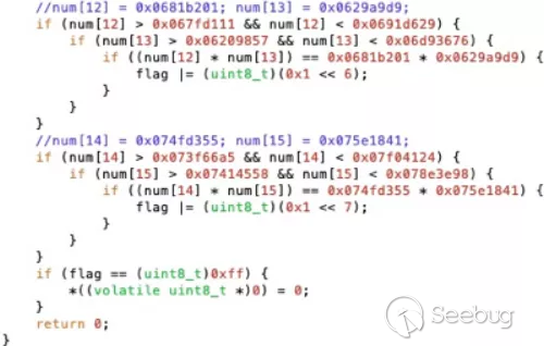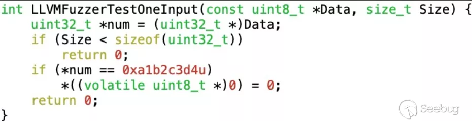 假設代碼((volatile uint8_t )0) = 0是我們想要找到并觸發其運行的bug。
