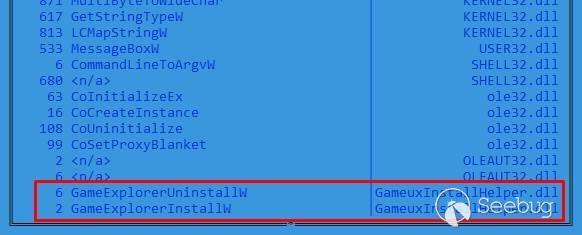 這個組件實際上不是合法的。在導出GameExplorerInstallW符號后,將執行攻擊者代碼。這種在合法應用程序上下文中加載惡意代碼的常用技術稱為DLL劫持。