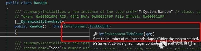 隨機函數調用一次,不帶任何參數。該調用返回一個隨機數,該隨機數的種子是從Environment.TickCount變量的值獲取的。此變量為4個字節,存儲自操作系統啟動以來的毫秒數。