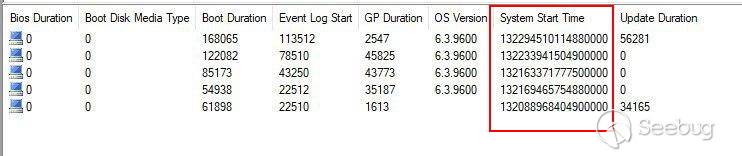 所以要解碼這些文件,我們只需要知道勒索軟件運行時的正常運行時間(計算機開機的時間)。