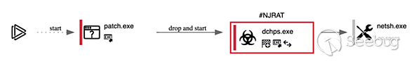 該腳本會進行多種惡意的活動,例如數據收集和偵察,并最終啟動patch.exe,這是一個用.NET編寫的njRAT dropper。