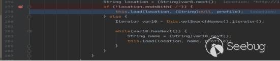 這里我們直接跳轉到處理這個惡意地址的關鍵部分,首先進入ConfigFileApplicationListener的load方法: