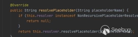 通過添加一個NonRecursivePropertyPlaceholderHelper類,對于二次解析的值進行限制:
