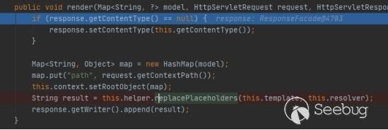 接著進入render方法查看,這里面的replacePlaceholders方法將會進行形如${}的spel表達式替換: