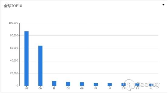 根據全網數據統計,使用Spring的網站多達80萬余,其中大部分集中在美國,中國的使用量排在第二位。其中香港、北京、上海、廣東四省市使用量最高。通過網絡空間搜索引擎的數據統計和柱狀圖表,如下圖所示。