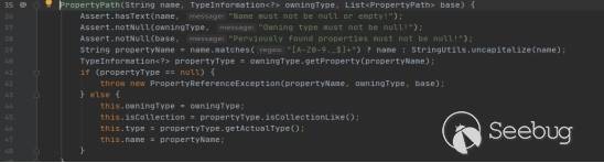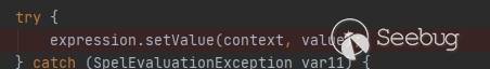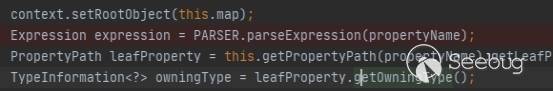 可以看到該方法用SpEL表達式解析了傳入的變量名,并在后面使用了get操作,從而可以導致漏洞的產生。