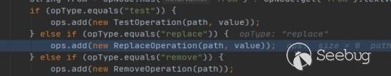 重點看這個三目運算,其中的判斷是看HTTP方法是否為PATCH和content-type是否為我們上面提到的那個,然后會進入this.applyPatch方法,接著根據我們指定的replace字段進入對應的處理器: