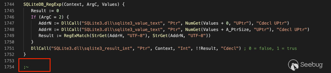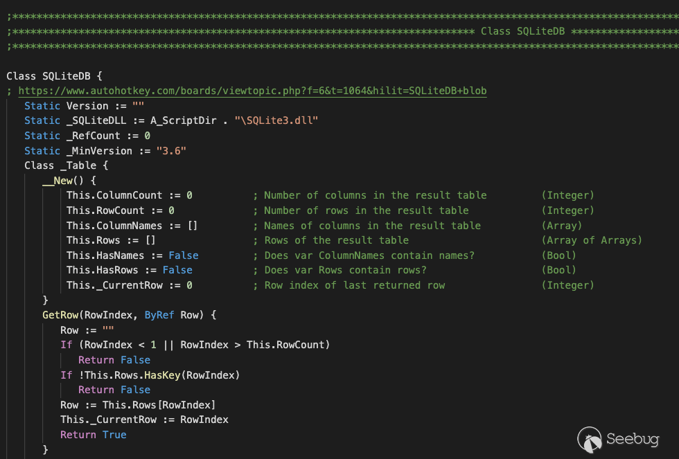 攻擊者使用以下開源代碼通過AHK處理SQLite數據庫。