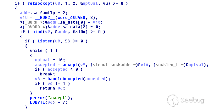 此shell監聽TCP端口51982。通信用硬編碼的密鑰加密。
