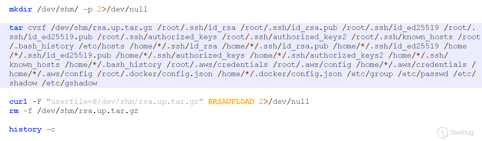 惡意攻擊者將使用TGZ(tar.gz)通過HTTP POST請求上傳這些被盜信息到攻擊者提供的URL。我們懷疑收集到的信息將作為改進后續攻擊的知識庫。