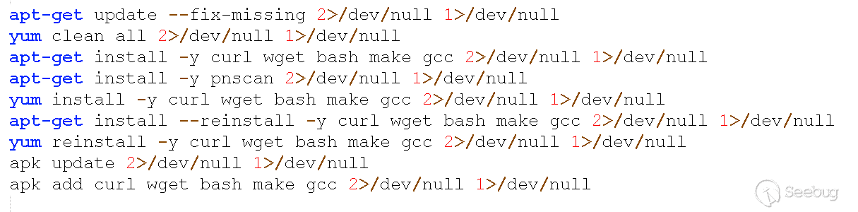 由于惡意腳本中使用了包管理器,特別是apt-get和yum。