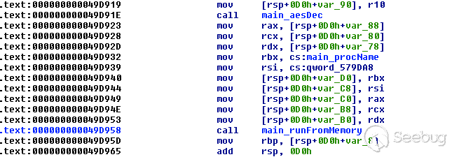 這個二進制文件是Go編譯的,包含AES加密的ELF文件。這是在執行過程中動態加載的,使用的是Go版本的LaufzeitCrypter。AES密鑰和初始化向量(IV)硬編碼在二進制文件中。