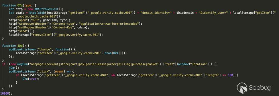在發送被攔截的支付卡信息之前,其數據會從本地存儲的_google.verify.cache.001對象中提取,并通過HTTP GET請求傳輸給攻擊者。
