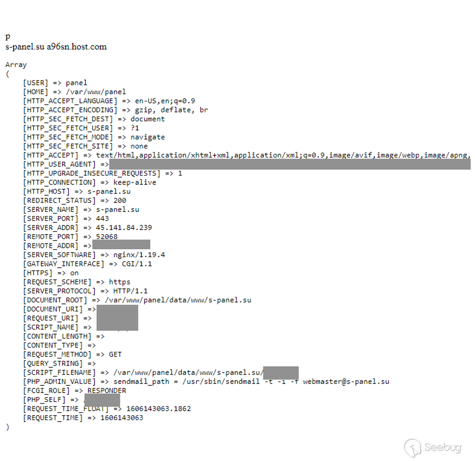 IP地址45.141.84[.]239(ZoomEye搜索結果)也鏈接到網站hXXp://s-panel[.]su/。在分析過程中,再次在UltraRank基礎結構的所有網站上找到了相同的腳本(圖6)。在這種情況下,所有網站文件所在的目錄稱為panel。