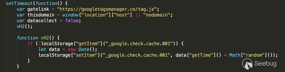 至少2019年1月開始,UltraRank就開始使用SnifLite JS Sniffer系列,當時它被用于攻擊Adverline廣告網絡。惡意代碼通過指向hXXp://googletagsmanager[.]co/網站上的JS文件的鏈接上載到受感染的網站。該域名偽裝為Google跟蹤代碼管理器googletagmanager.com的合法域。攻擊者的網站hXXp://googletagsmanager[.]co/也可用于收集被攔截的支付卡數據(圖2)。