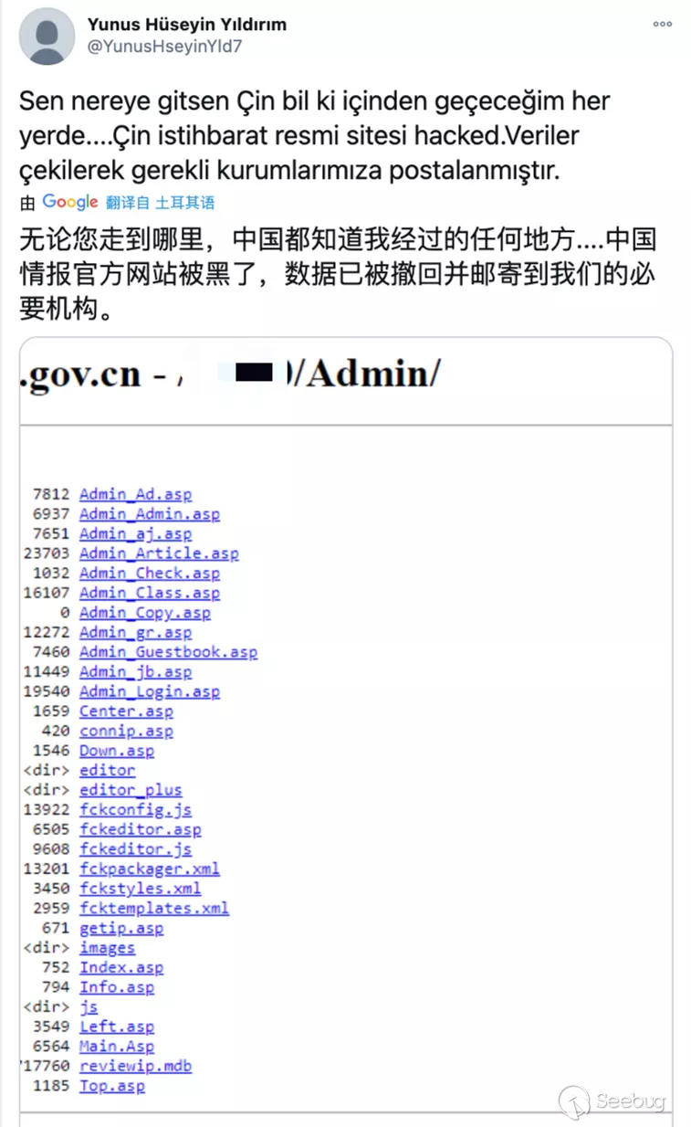 在這篇土耳其文的帖子當中,攻擊者傳達了其針對中國網站發動惡意攻擊的意圖:“對中國的攻擊已經開始!朋友們,你們都在關注議程。不幸的是,中國在東突厥斯坦對維吾爾族土耳其人的不人道折磨已使人們陷入冷血的境地。我們不會保持沉默。最近成立并于今天(2019/12/22)宣布成立的圖蘭軍已將中國作為第一個目標。截至目前,所有中文站點都是我們自由攻擊的目標。每個人都應該參與攻擊活動,無論是團隊領導還是普通成員。”