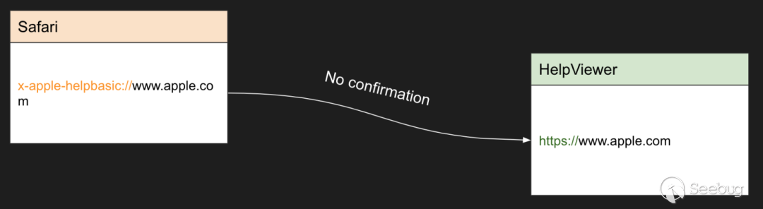 只要 URL 的域名滿足 *.apple.com,就會打開對應的 https 頁面。例如x-apple-helpbasic://www.apple.com/aaa,將訪問 https://www.apple.com/aaa