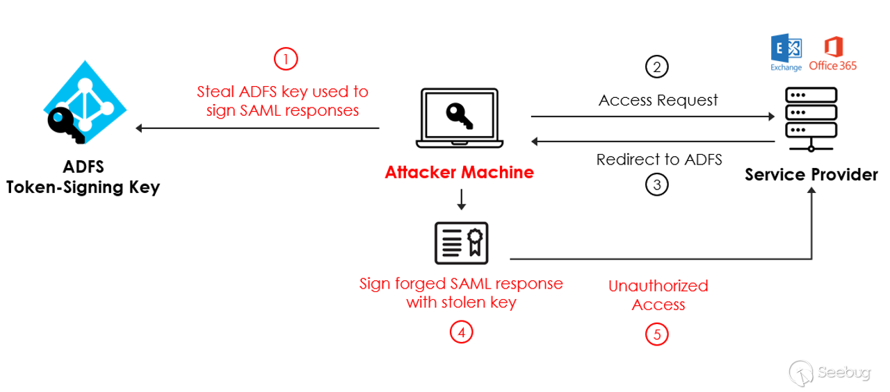 攻擊者直接通過獲取的私鑰生成簽名的SAML令牌,省去ADFS的認證過程。